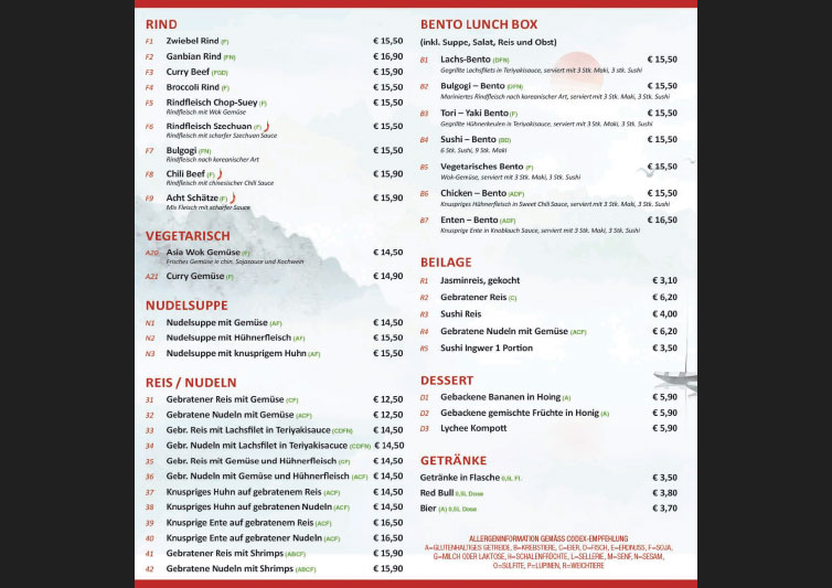 Wir bieten eine große Auswahl japanischer, chinesischer und thailändischer Spezialitäten vom Wok und Grill an. Besonders beliebt sind unser „All-you-can-eat-Buffet“ und der Teppanyaki-Grill. Hier finden Sie eine Übersicht über unser kulinarisches Angebot. Wir würden uns freuen, Sie demnächst bei uns begrüßen zu dürfen und wünschen „Guten Appetit!“ Ihr Haikky Asia Cooking-Restaurant-Team